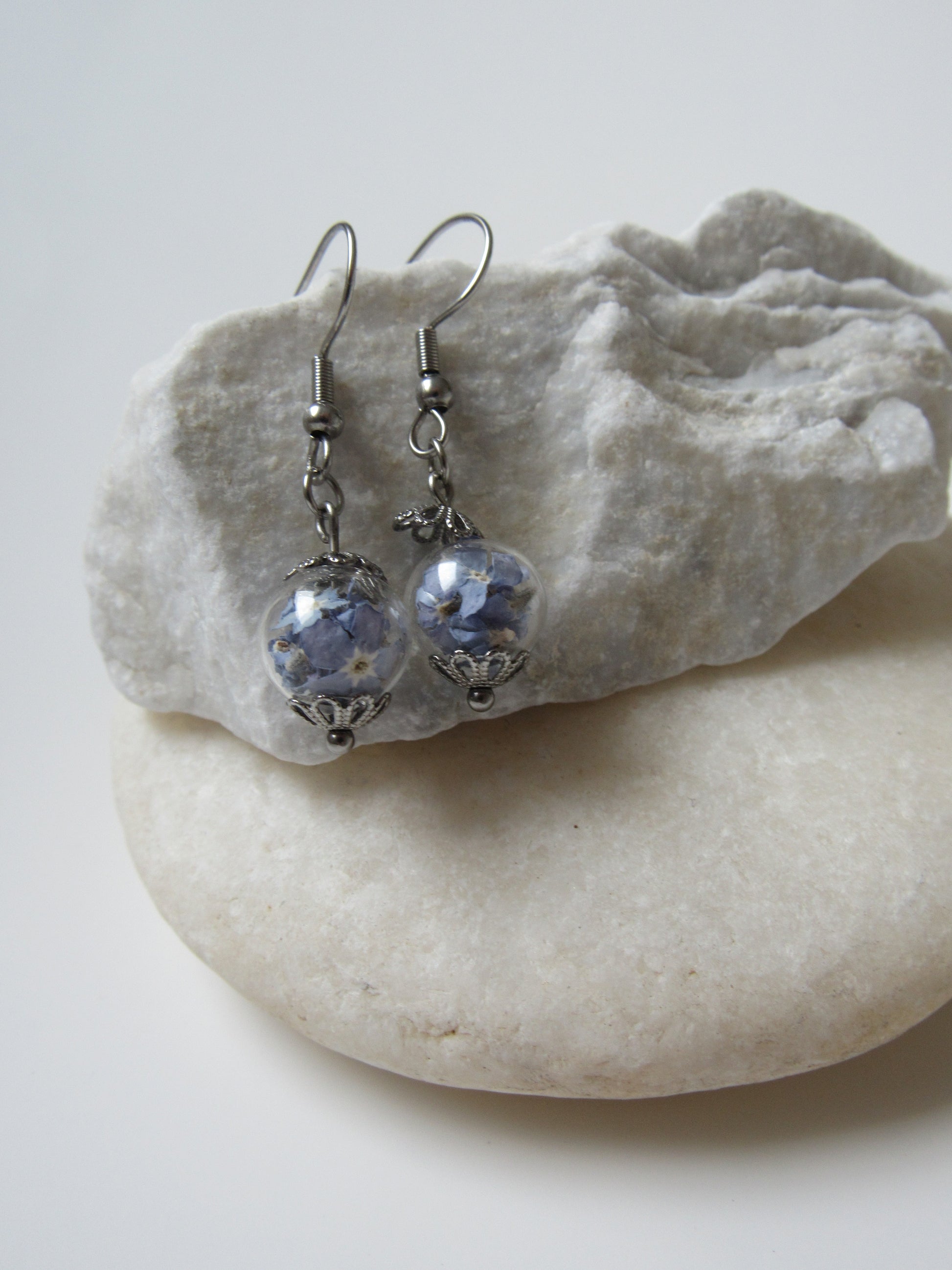 Orecchini pendenti con sfera di vetro - blu nontiscordardime