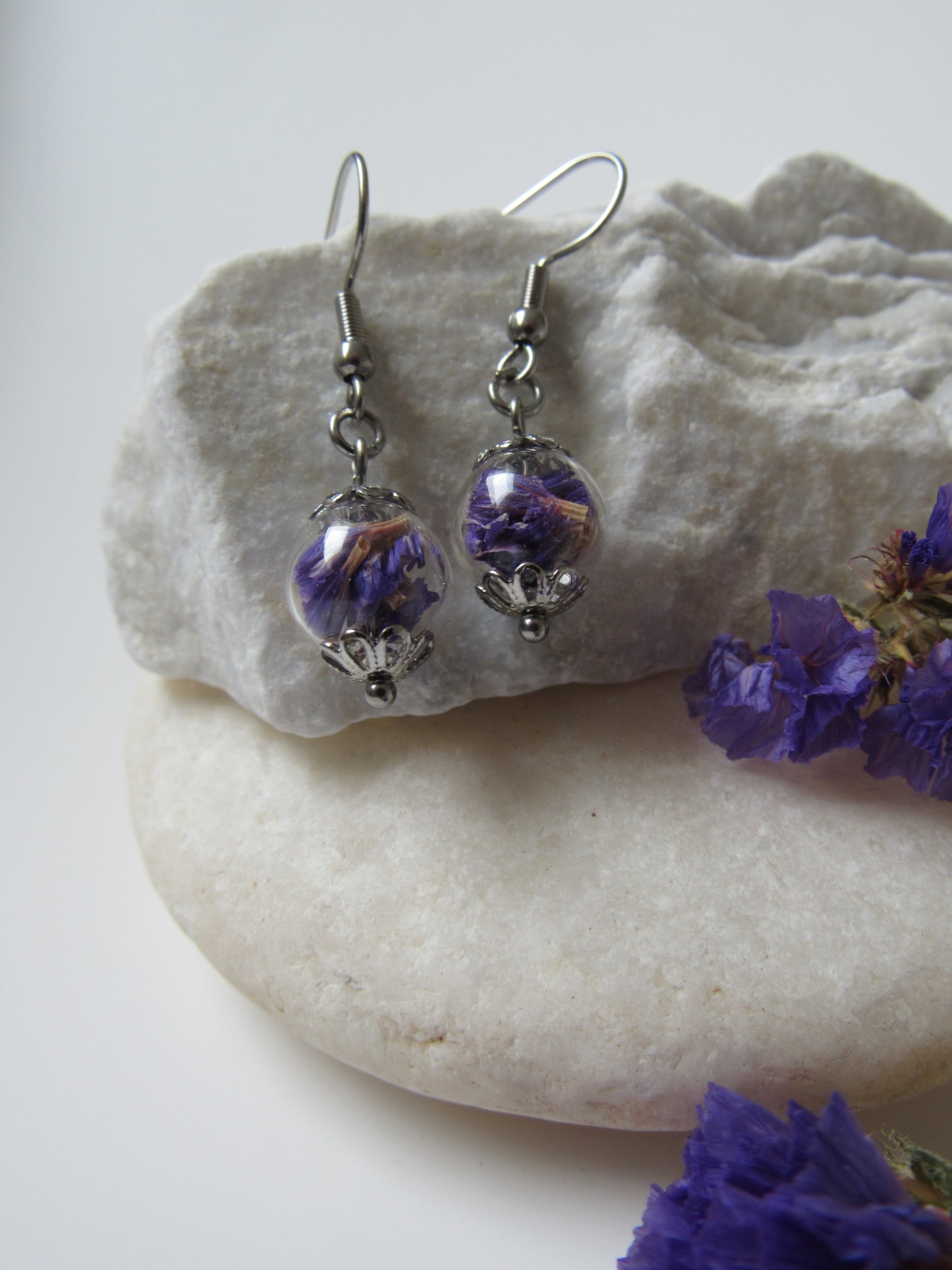 Hängeohrringe mit Glaskugel - Strandflieder