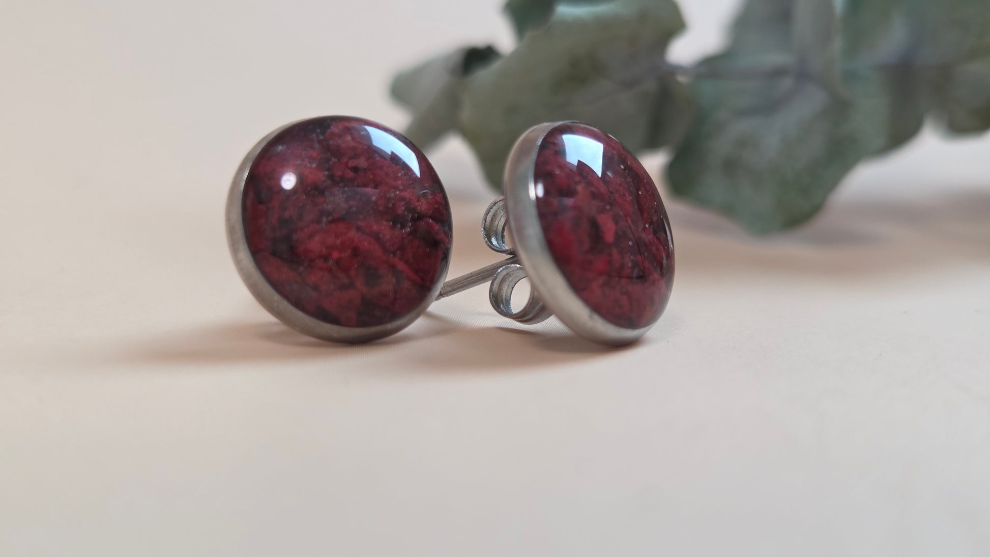 Ohrstecker mit wunderschönen Steinen handgegossen in Harz.